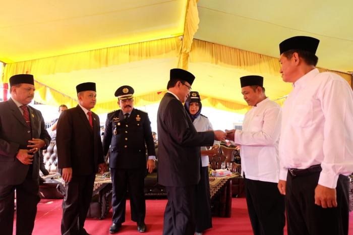 Penyerahan remisi atau pengurangan hukuman secara simbolis dilakukan oleh Bupati Inhil, HM Wardan kepada para warga binaan dengan didampingi oleh Kepala Lembaga Pemasyarakatan Klas II A Tembilahan, Sudirwan.