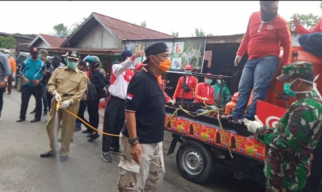 Penyemprotan disinfektan dilakukan sebagai upaya untuk memutus mata rantai penyebaran Covid-19 di Kabupaten Inhil.