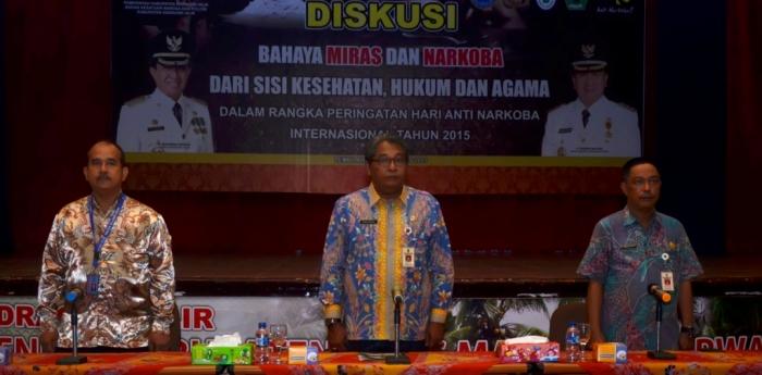 RIAUONE.COM, TEMBILAHAN, INHIL, ROC, - Dalam rangka mengatasi Bahaya Miras dan Narkoba dari sisi Kesehatan, Hukum dan Agama terhadap generasi Muda, Pemerintah Kabupaten Indragiri Hilir melalui Badan Kesatuan Bangsa dan Politik (KKesbangpol) melaksanakan Diskusi sehari.