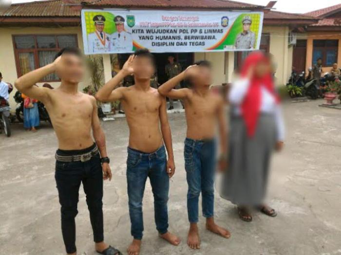 Ditambahkannya, ke-4 remaja tersebut dibawa ke kantor Satpol PP untuk dimintai keterangan sekaligus diberikan efek jera, dengan diberikan hukuman hormat bendera.