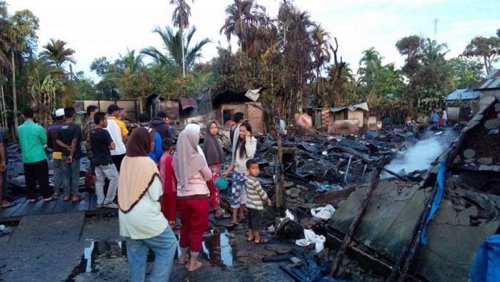 RIAUONE.COM,TEMBILAHAN-Sebanyak delapan unit rumah warga di RT 012, RW 005, Jalan Merdeka Desa Pulau Palas, Kecamatan Tembilahan Hulu Kabuapten Inhil habis dilahap si jago merah, Kamis (17/5/2018) dini hari.