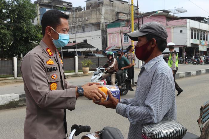 - Berbagi Nasi Kotak dengan Tukang Becak dan Ojek, Polres Inhil Selipkan Imbauan Prokes Covid-19