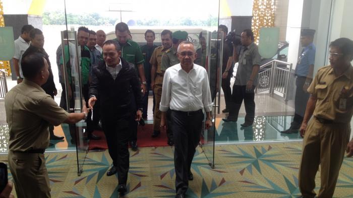 RIAUONE.COM, TEMBILAHAN, INHIL, ROC, - Menteri Ketenagakerjaan dan Transmigrasi RI Hanif Dhakiri, dan Ketua Umum Dewan Pengurus Pusat Partai Kebangkitan Bangsa Muhaimin Iskandar, tiba di Kabupaten Indragiri Hilir, Rabu (16/12).