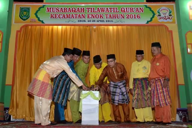 RIAUONE.COM, TEMBILAHAN, ROC- Pembukaan acara Musabaqah Tilawatil Qur'an (MTQ) tingkat kecamatan Enok berlangsung meriah, Jumat (22/04/2016) malam. Acara yang dipusatkan di lapangan Kantor Camat Enok dibuka langsung oleh Bupati Indragiri Hilir, HM. Wardan.