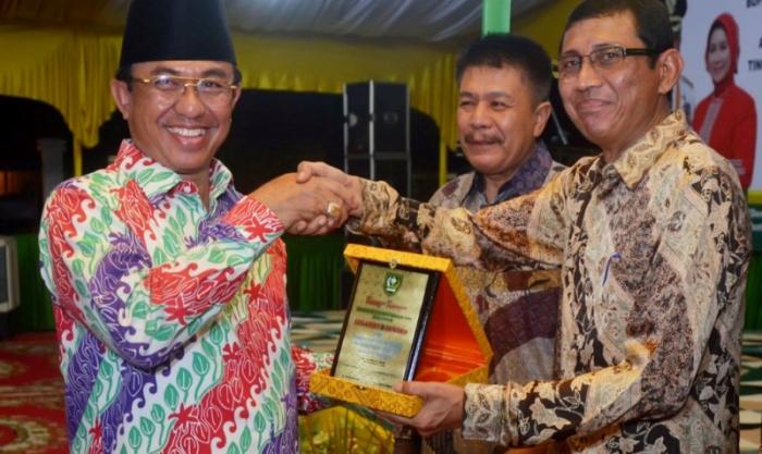 Usai sambutan di lanjutkan dengan dengan penyerahan cendramata oleh Bupati HM Wardan kepada Kepala BPMPD Bangdes Propinsi Riau serta bupati dan wako se Provinsi Riau. (hms/ade).
