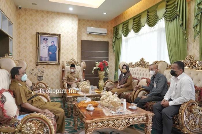 INHIL, Tembilahan - Bupati HM.Wardan menerima kunjungan silaturahmi Kepala Cabang Bank Riau Kepri yang baru untuk di Kabupaten Indragiri Hilir, Selasa (24/8/2021) di ruang tamu Rumah Dinas Bupati Jalan Kesehatan Nomor 1 Tembilahan.