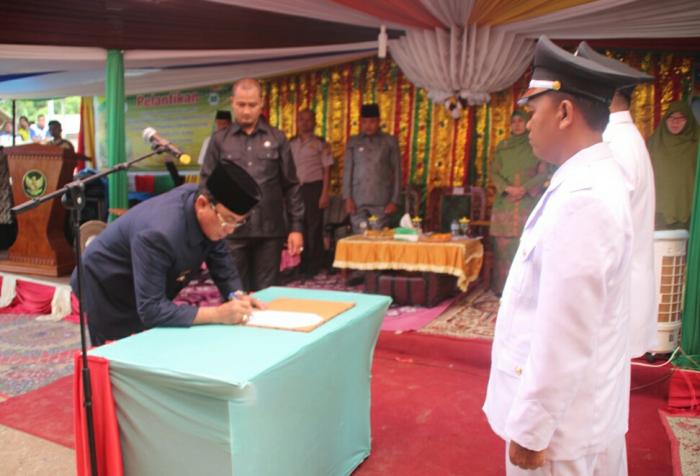 RIAUONE.COM, TEMBILAHAN - Pelantikan Kepala Desa (Kades) merupakan implementasi dari Undang-undang (UU) Nomor 6 Tahun 2014 tentang desa. Sekaligus merupakan amanah dari pemerintah dan masyarakat.