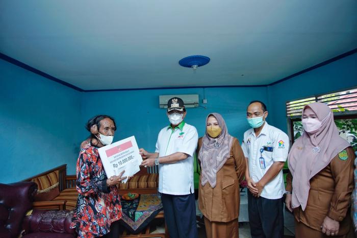 Pada kesempatan tersebut bupati Inhil memberi bantuan sebesar 12 juta rupiah untuk berobat dan rehap rumah ibu.