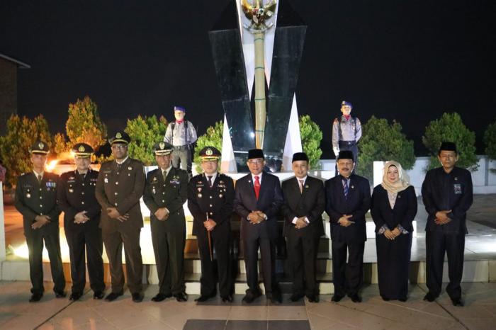 RIAUONE.ONE, TEMBILAHAN- Bupati Kabupaten Inhil mengikuti apel kehormatan dan renungan suci dalam keheningan di Taman Makam Pahlawan Yudha Bakti, Tembilahan Hulu, Sabtu (17/8/2019) malam.