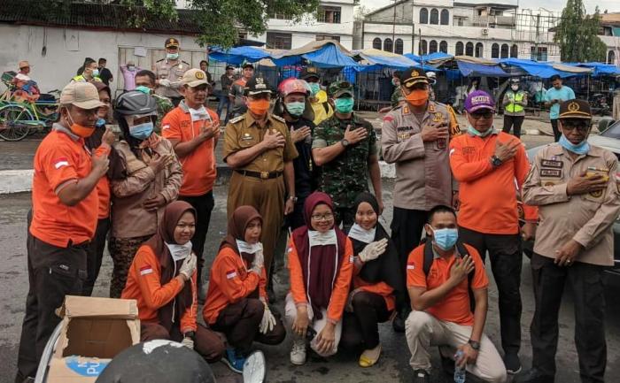 Usai mengikuti apel bersama Satgas Pramuka Peduli Penanggulangan Bencana bergerak menuju lokasi di sekitar Pasar Tembilahan. Disana, Satgas Pramuka Peduli Penanggul angan Bencana bersama PSMTI, Anggota Kodim dan Polres Inhil langsung melakukan penyemprotan disinfektan di sejumlah fasilitas umum dan sarana ibadah yang ada di sekitar pasar tersebut.