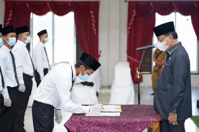 INHIL, Tembilahan - Senin (28/6/2021) bertempat di aula Hotel Telaga Puri Jalan Lingkar I Tembilahan Bupati Indragiri Hilir H. M. Wardan Melantik Ketua dan Anggota serta meresmikan Badan Permusyawaratan Desa ( BPD ) se Kecamatan Batang tuaka untuk masa bakti 2021 - 2027.