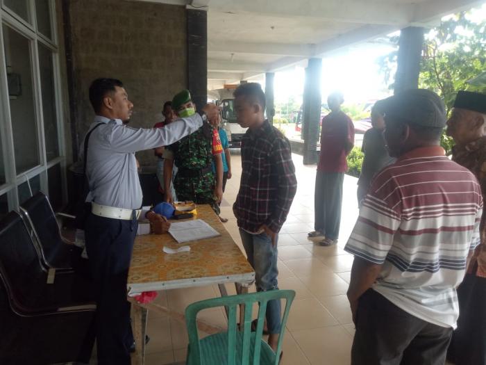 RIAUONE.COM- Waspada penyebaran Covid-19 di Kabupaten Indragiri Hilir, Personil Polsek KSKP dan Personil KSOP Tembilahan telah melakukan pemeriksaan suhu tubuh kepada setiap penumpang yang datang di Pelabuhan Pelindo Tembilahan, Selasa (31/3/2020).