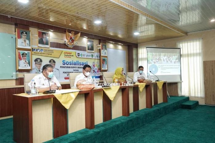 INHIL, Tembilahan - Rabu (7/7/2021) bertempat di aula lantai 5 Kantor Bupati Indragiri Hilir Jl. Akasia No. 1 Tembilahan berlangsung acara Sosialisasi Peraturan Bupati Indragiri Hilir tentang Pencegahan dan Penanggulangan Stunting Terintegrasi.