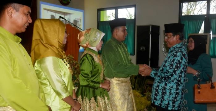 Di akhir acara Pisah Sambut di lakukan penyerahan cendramata dan foto bersama oleh Bupati dan Istri yang diikuti Unsur Forkopimda. (zar).