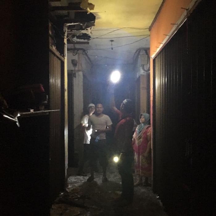 Keduanya kemudian melakukan pengecekan dan menemukan adanya kepulan asap yang disertai api pada dinding/plafon disudut atas sebuah toko milik Shanti.