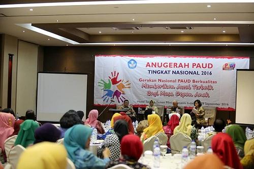Kegiatan yang bertemakan 'Gerakkan Nasional PAUD Berkualitas Memberikan Awal Terbaik Bagi Masa Depan Anak' digelar selama dua hari ini yang dimulai dari tanggal 28-29 September 2016, dihadiri langsung oleh Direktur Jenderal Pendidikan Anak Usia Dini dan Pendidikan Masyarakat (PAUD dan Dikmas), Dr.Hj,Erni Guntarti Tjahjo Kumolo yang sekaligus Ketua Umum Tim Penggerak PKK, Prof.DR.Arief Rachman,M.Pd sebagai Ketua Harian Komisi Nasional Indonesia, untuk UNESCO Kementerian Pendidikan dan Kebudayaan, Ella Yullaelawati Direktur Pembinaan PAUD dan Bunda PAUD (Provinsi, Kabupaten/Kota, Kecamatan dan Desa) tokoh masyarakat peduli PAUD.