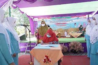 Usai menyaksikan Pengukuhan POKJA Bunda PAUD se Kecamatan Tembilahan Hulu dan Pelantikan PC. HIMPAUDI Kec. Tembilahan Hulu, Bunda PAUD Kabupaten Indragiri Hilir juga berkesempatan meninjau Puskesmas Pembantu Tembilahan Barat sekaligus menyerahkan bantuan secara simbolis berupa makanan tambahan untuk balita gizi kurang yang ada di Kecamatan Tembilahan Hulu.