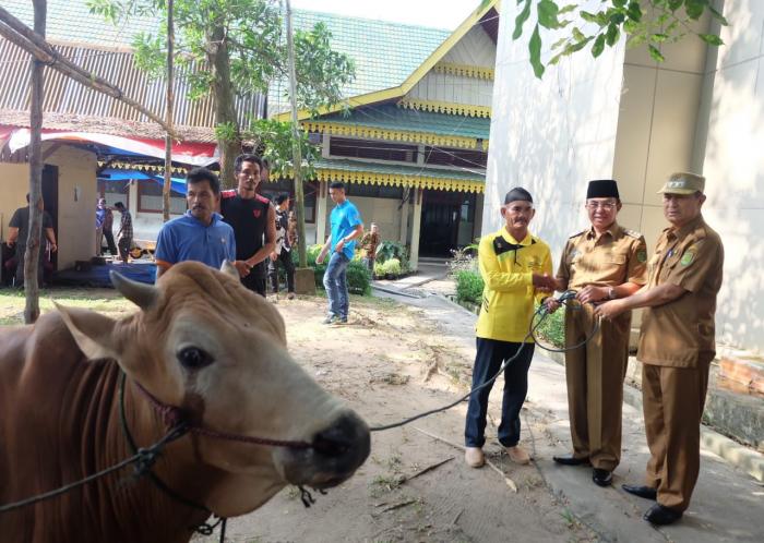 RIAUONE.COM, TEMBILAHAN- Bupati Kabupaten Inhil, HM Wardan menunaikan ibadah Kurban pada perayaan Idul Adha 1440 Hijiriyah di lingkungan Sekretariat Daerah Kabupaten Inhil, Senin (12/8/201) pagi di Kantor Bupati Kabupaten Inhil, Tembilahan.