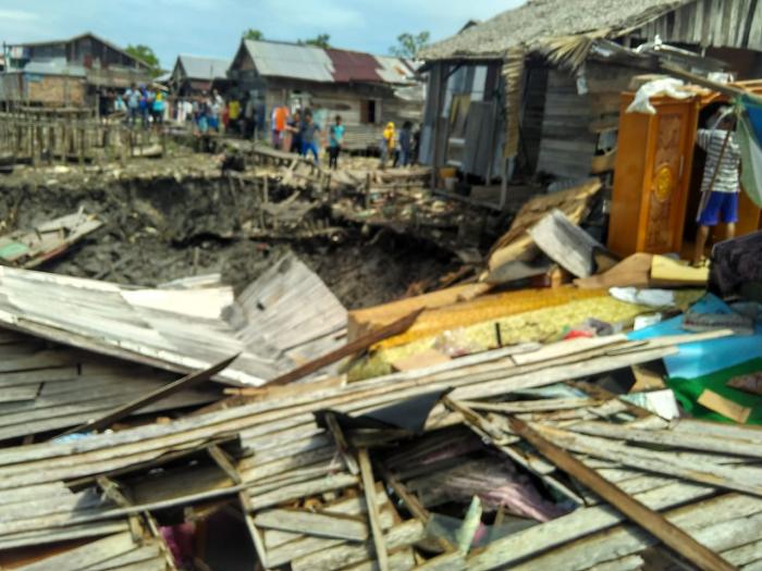 Bermula kejadian ini diketahui Irwan, (38 thn) seorang nelayan warga Jalan Kenangan RT.02 RW.01 Desa Tanjung Baru ini, sedang berada di dalam rumahnya. Ia tiba-tiba mendengar suara papan retak dan kemudian melihat keluar rumah.
