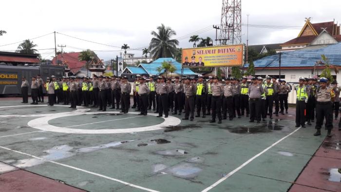 Dalam kesempatan tersebut, Kapolres mengingatkan kepada seluruh personel yang terlibat pengamanan untuk selalu waspada terhadap ancaman pada keselamatan pada diri petugas.