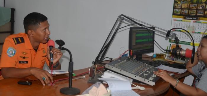 RIAUONE.COM, TEMBILAHAN, ROC - Dalam rangka memperkenalkan keberadaan TIM BASARNAS di Daerah Khususunya Kabupaten Inhil Kepala Pos siaga SAR Tembilahan, Letda SAR Rio Putra, melakukan sosialisasi berupa on air Talk Show melalui Radio Gemilang 92,6 FM yang ada di Kabupaten Inhil, Senin (18/1).