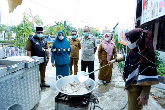 Dapur umum yang berlokasi di halaman Kantor Dinas Sosial ini ditinjua lansung ketua TP PKK Hi.Zulaikhah Wardan, S.Sos, M.E yang juga sebagai ketua K3S Inhil, Selasa (29/6/2021).