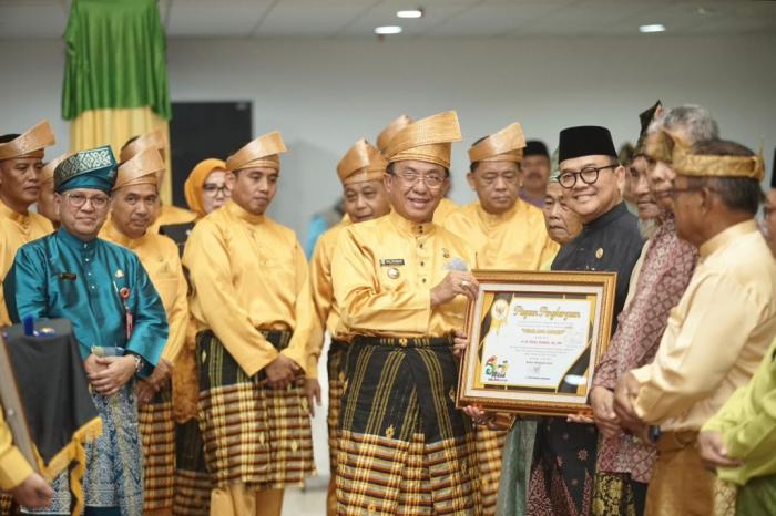 Paripurna Istimewa dilanjutkan dengan penyerahan penghargaan Anugerah Gemilang Award untuk tokoh masyarakat yang dianggap memberikan kontribusi untuk pembangunan di Kab. Inhil.