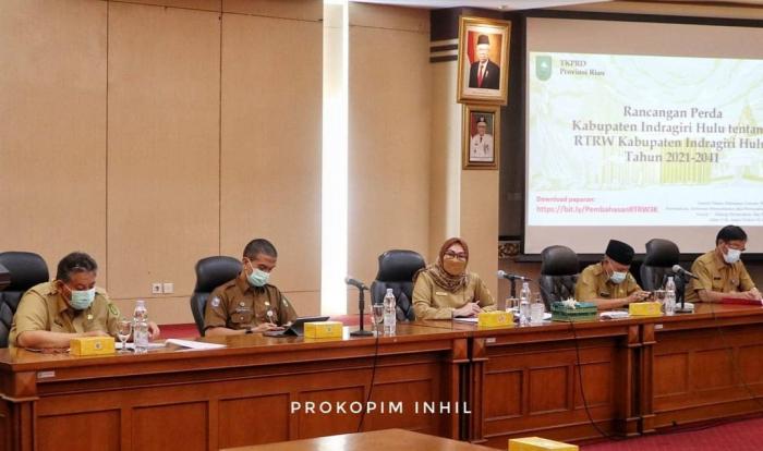 INHIL, - Pemerintah Kabupaten (Pemkab) Indragiri Hilir (Inhil) diwakili oleh Sekretaris Daerah (Sekda) Drs H Afrizal MP menghadiri Rapat Pembahasan Rancangan Peraturan Daerah (Ranperda) Rencana Tata Ruang Wilayah (RTRW) Kabupaten Tahun 2021-2041, Senin (05/07/2021) pagi.