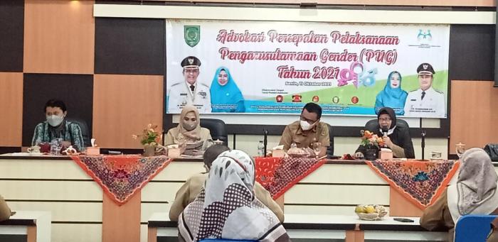 RIAUONE.COM, TEMBILAHAN - Untuk memperkuat komitmen Pengarusutamaan Gender (PUG) dalam mewujudkan Kesetaraan Gender. Dinas Pengendalian Penduduk Keluarga Berencana Pemberdayaan Perempuan dan Perlindungan Anak (DP2KBP3A) Kabupaten Indragiri Hilir (Inhil) melakukan Advokasi Pelaksanaan PUG di Aula Bappeda Kabupaten Indragiri Hilir, Senin (11/10).