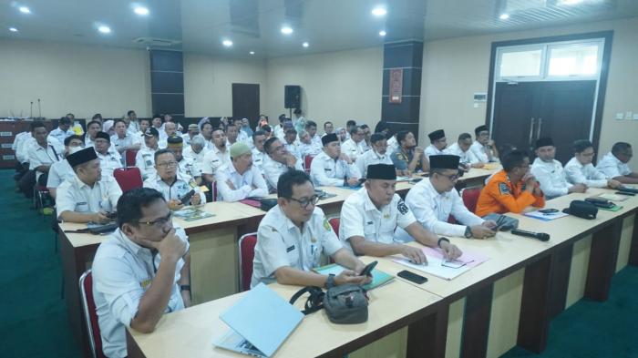 Rapat di pimpin secara langsung oleh Penjabat (Pj) Sekretaris Daerah Kabupaten Indragiri Hilir Ery Putra dan didampingi Asisten II dan III sekretariat Daerah kabupaten Indragiri Hilir, Staf Ahli Bupati serta diikuti seluruh satuan Kepala Organisasi Perangkat Daerah dan Camat se-Kabupaten Indragiri Hilir.