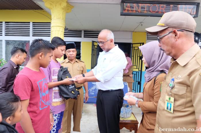 Bantuan berupa perlengkapan sekolah, sembako dan uang tunai yang diserahkan langsung oleh PJ Bupati Ridyanto itu bersumber dari Pemkab serta BPBD Inhil.