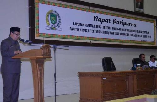 Mewakili Bupati Inhil, HM Wardan, Asisten II Setdakab Inhil, Rudiansyah menyampaikan apresiasi kepada DPRD Inhil yang telah bersama-sama selama 26 hari melakukan pembahasan terhadap lima Ranperda yang diusulkan itu.