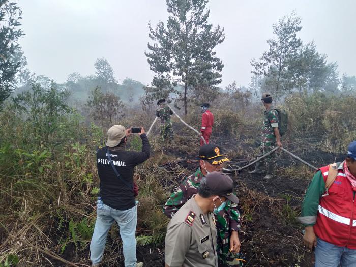 Berdasarkan pantauan di lokasi titik api, asap tebal menyelimuti areal kebakaran. Aroma lahan gambut menyengat menyeruak ketika menuju lokasi titik api. Sejumlah personel Satgas bolak balik membawa selang dan mesin pemadam. Mereka berpacu dengan angin yang terus berembus kencang.