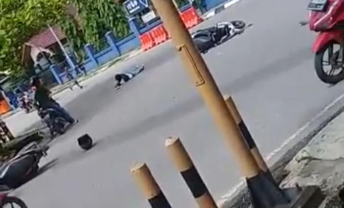 TEMBILAHAN- Peristiwa kecelakaan dua pengendara sepeda motor jenis matic terjadi di persimpangan lampu merah jalan M Boya Tembilahan Kota Kabupaten Indragiri Hilir (Inhil) pada Kamis, (4/6/20) siang.