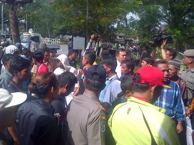 RIAUONE.COM, TEMBILAHAN, ROC- Puluhan warga Desa Batu Ampar, Kecamatan Kemuning menggelar aksi unjuk rasa di kantor Bupati Indragiri Hilir (Inhil), tepatnya di depan Kantor Badan Perencanaan Pembangunan Daerah (Bappeda) Jalan Akasia, Tembilahan, Senin (25/4/2016).