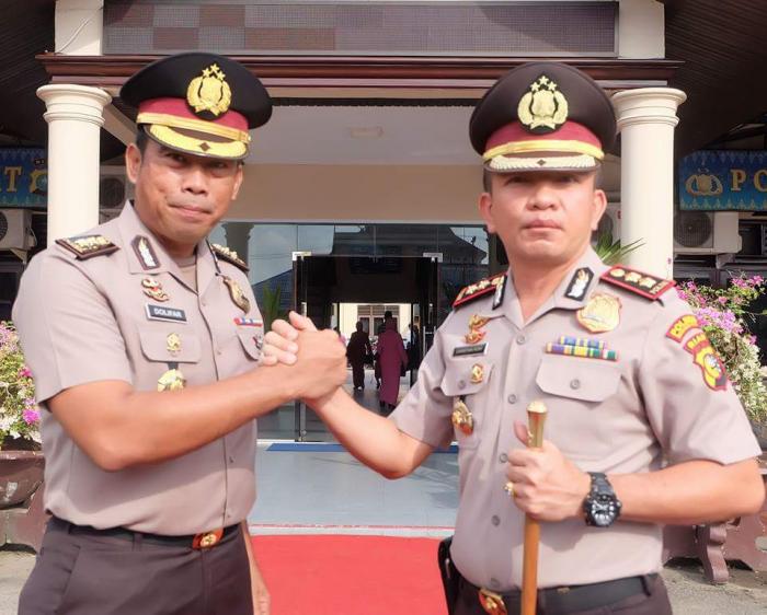 Sebelumnya, AKBP Christian Rony Putra, S.IK, M.Si, dan Ketua Bhayangkari Cabang Indragiri Hilir Ny. Adelya Christian Roni Putra, juga disambut dengan kalungan bunga dan tradisi pedang pora.