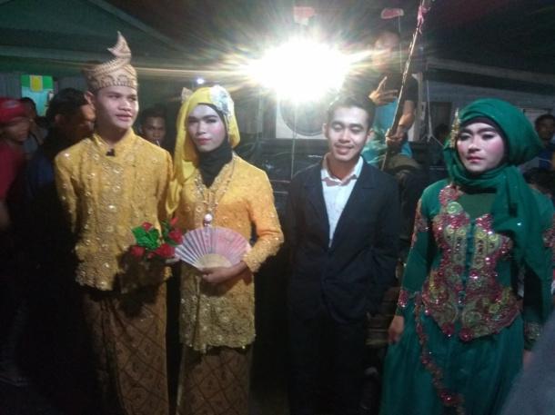 Uniknya, bangun sahur di desa ini dimeriahkan dengan beberapa pasangan pengantin sejenis yang diarak keliling desa.