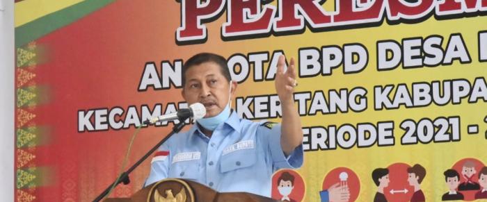 "Kepada Anggota BPD yang baru dilantik diharapkan dapat bekerja maksimal dengan menjalankan Fungsi nya untuk mengawasi setiap proses pembangunan,"kata wabup