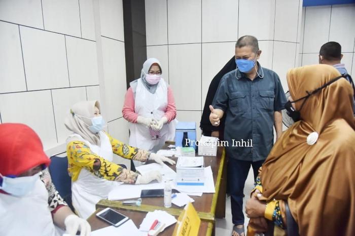 INHIL, TEMBILAHAN, - Gerak Cepat Pemerintah Kabupaten Indragiri Hilir dalam menurunkan angka kematian dan penyeberan Covid-19 terus dilakukan salah satunya dengan Vaksinasi massal kepada berbagai kelompok baik Pelayan Publik, Tenaga Pendidikan, Tenaga Kesehatan (Nakes) hingga Lanjut Usia (Lansia).