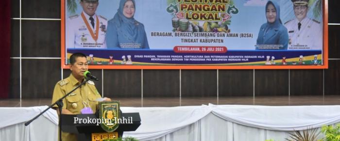 INHIL, TEMBILAHAN - Wakil Bupati Kabupaten Inhil, H.Syamsuddin Uti membuka sekaligus mengumumkan pemenang Lomba Cipta Menu Beragam, Bergizi, Seimbang dan Aman (B2SA) Berbasis sumber daya alam lokal Kabupaten Inhil Tahun Anggaran 2021, Senin (26/7/2021), di gedung Engku Kelana, Tembilahan.