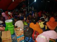RIAUONE.COM, TEMPULING - Ketua Palang Merah Indonesia (PMI) Kabupaten Indragiri Hilir, Hj Zulaikhah, tak dapat menahan harunya saat menyaksikan langsung pengungsi banjir Desa Mumpa, Kecamatan Tempuling.