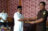 RIAUONE.COM, TEMBILAHAN - Bupati Kabupaten Indragiri Hilir (Inhil), HM Wardan bersama Panitia Pengawas Pemilu (Panwaslu) Kabupaten Inhil menandatangani Naskah Perjanjian Hibah Daerah (NPHD) di Aula lantai V (Lima) Sekretariat Daerah Kabupaten Inhil, Tembi
