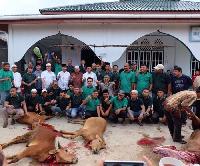 Bupati Inhil Saksikan Penyembelihan Hewan Qurban di Desa Teluk Kiambang