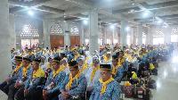 RIAUONE.COM, TEMBILAHAN - Bupati Kabupaten Indragiri Hilir (Inhil), HM Wardan melepas keberangkatan 237 (Dua Ratus Tiga Puluh Tujuh) orang Jema'ah Calon Haji (JCH) Kelompok Terbang (Kloter) 8 (Delapan) menuju embarkasi Batam di Mesjid Al - Huda, Temb