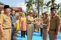 RIAUONE.COM, TEMPULING - Kelurahan Pangkalan Tujuh Kecamatan Tempuling Kabupaten Indragiri Hilir (Inhil) melaksanakan pisah sambut dari lurah H. Baharuddin kepada lurah baru E. Laksamana Mohd. Ramadhan Fitra di halaman Kantor Lurah Pangkalan Tujuh, Rabu,