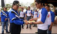 RIAUONE.COM,PEKANBARU - Apel kebagsaan Tiga Pilar dalam rangka ijentesi di wilaya Provinsi Riau tahun 2016, Bupati Kabupaten Indragiri Hilir HM Wardan yang menghadiri apel tersebut siap mendukung arahan presiden tentang hubungan yang harmonis antar lembag