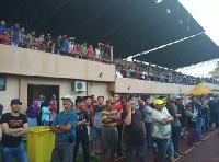 RIAUONE.COM, TEMBILAHAN - Ribuan masyarakat Inhil tumpah ruah menyaksikan Semi final Turnamen KNPI Cup 2016 yang berlangsung di Stadion Utama Beringin Tembilahan, Sabtu (3/9/2016).