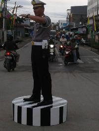 RIAUONE.COM, TEMBILAHAN - Kasat Lantas Polres Inhil AKP Jusli, SH ikut turun tangan langsung terjun melakukan pengaturan Lalu Lintas di traffic light simpang empat Jl. Telaga Biru Tembilahan.