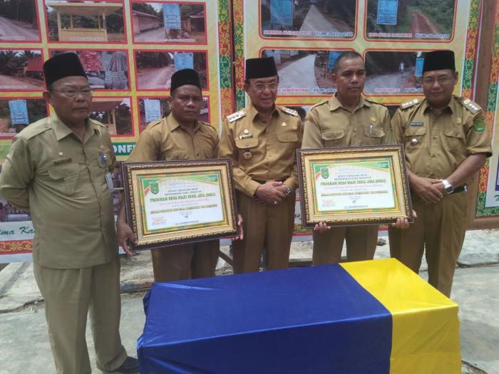 Bupati Indragiri Hilir HM Wardan, menyerahkan penghargaan dan melakukan penarikan undian wajib pajak PBB P2 Kabupaten Inhil tahun 2015, yang dipusatkan di halaman Kantor Dinas Pendapatan Daerah, Rabu (16/12).