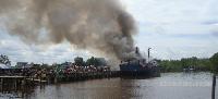 Kapal Bermuatan BBM Hangus Terbakar di Tembilahan Hulu